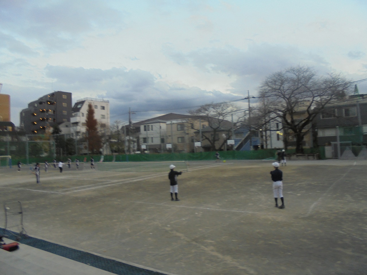 先週は、テニス部と野球部が並んで校庭で練習をしていました。
