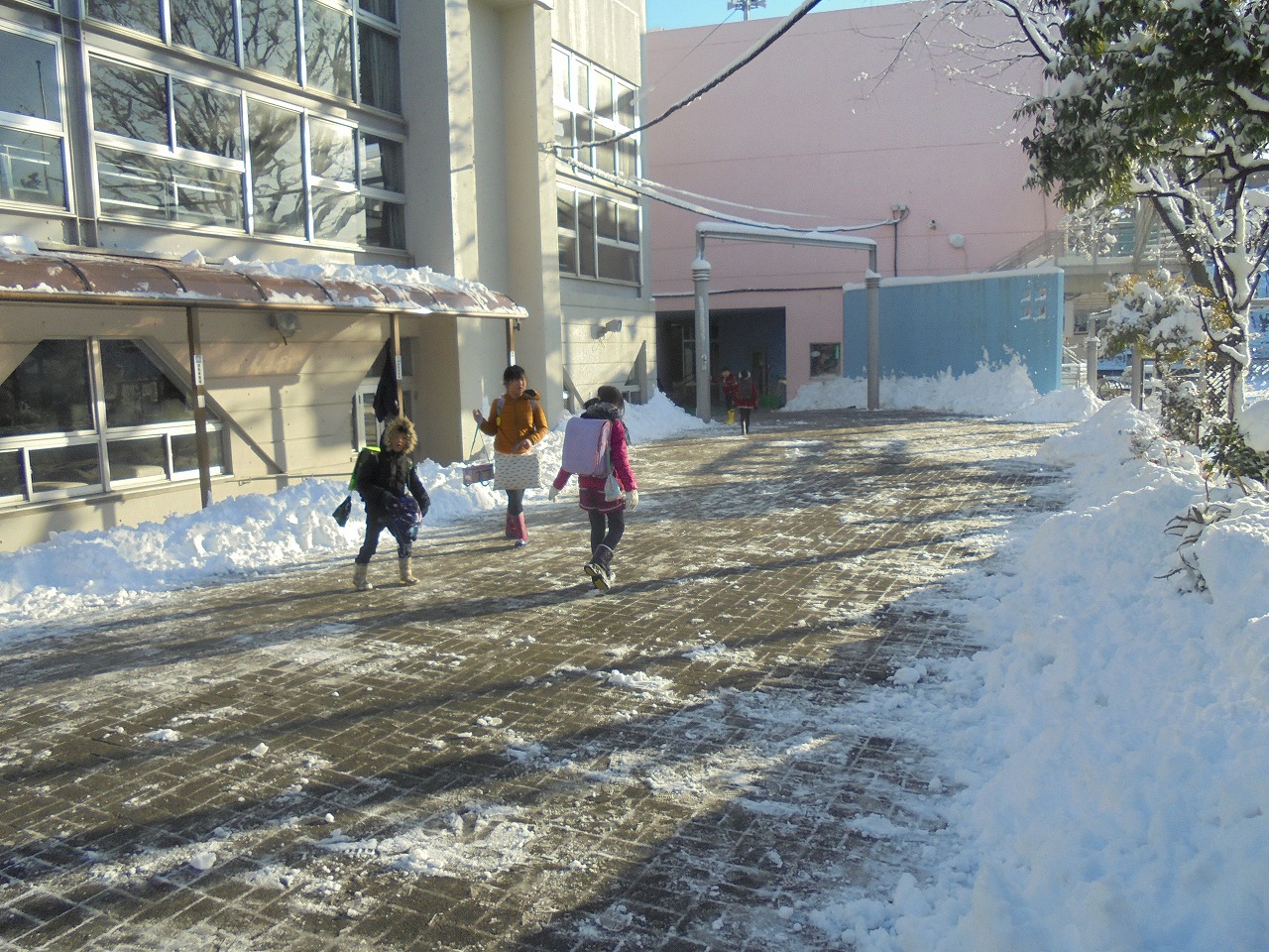 雪かきをし、子どもたちが登校するころには通路の雪を