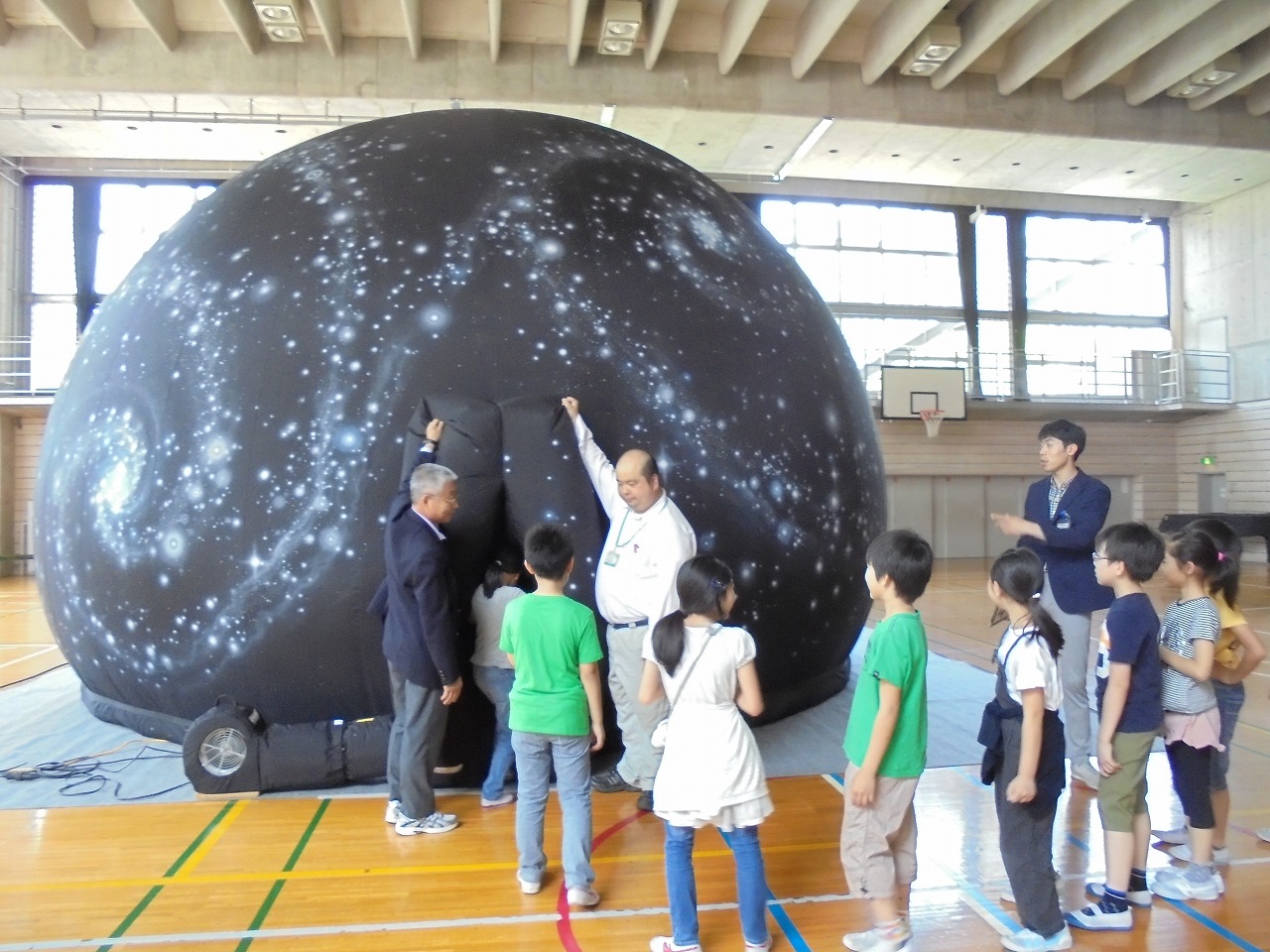 今日は4年生が済美教育センターの移動プラネタリウムの