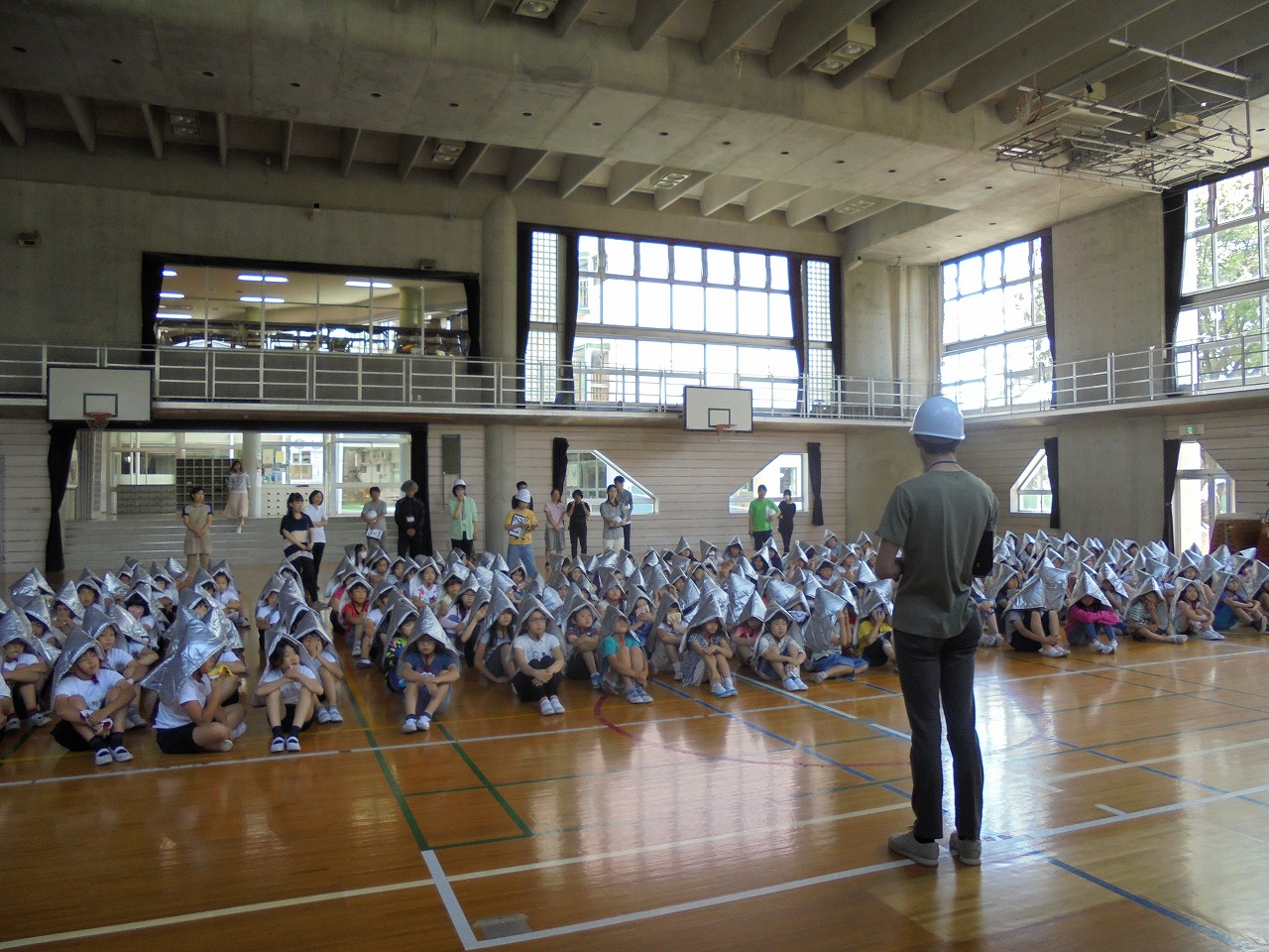地震想定の避難でしたが、校庭ではなく、体育館に集合しました。