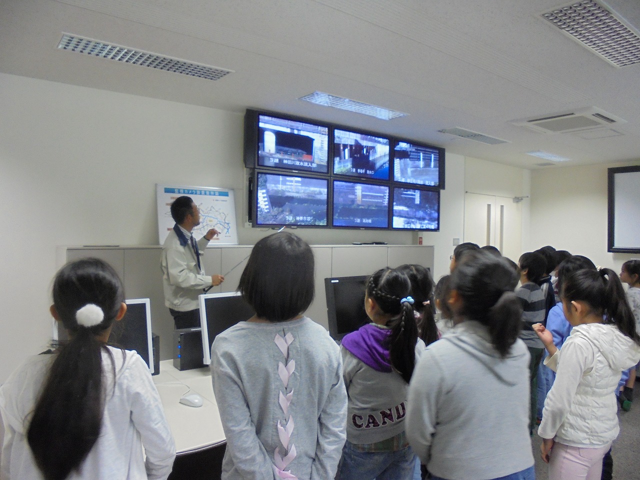 取水口の監視をしているシステムルームの見学をした後、