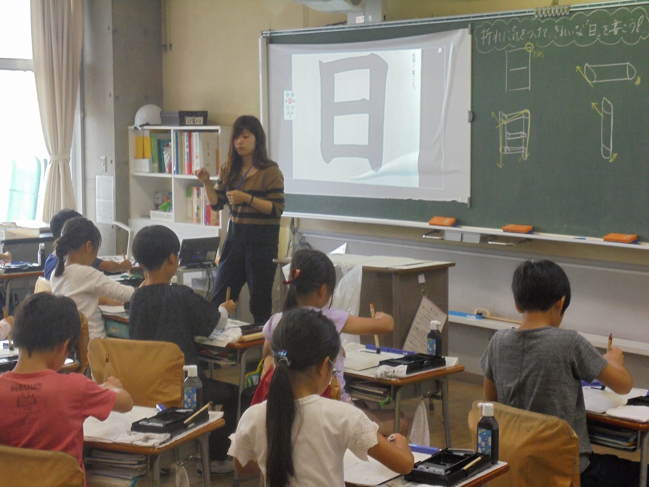 今日は1時間目に3年2組が毛筆の授業をしていました。