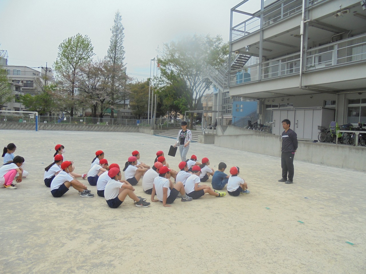 今日、5年1組の体育授業に高円寺中の体育科の与島先生が来てくれました。