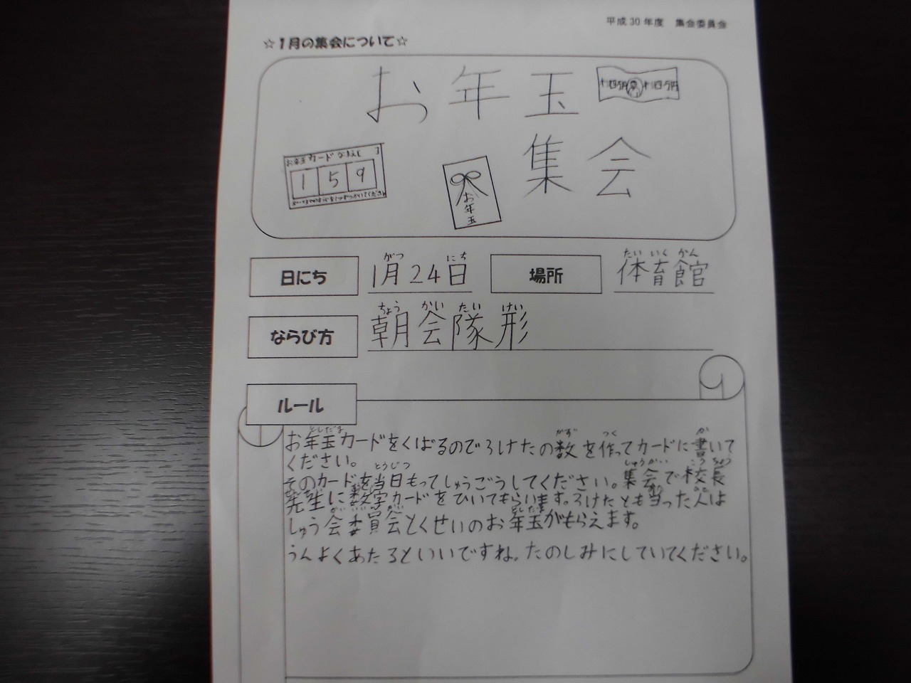 3けたの数が当たった人は集会委員会特製のお年玉を