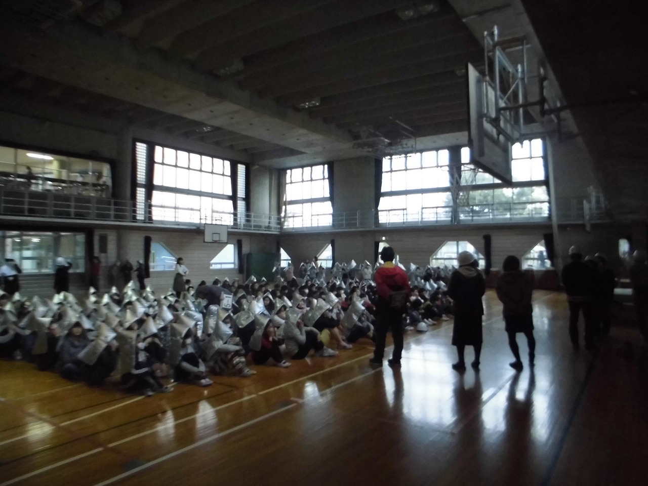 雨が降ったので体育館への避難でした。