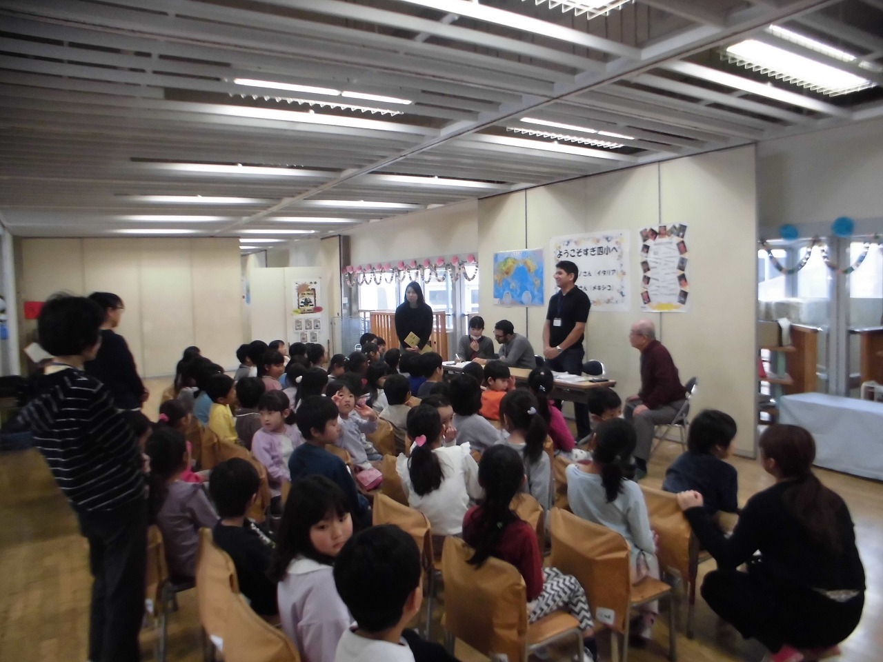 それぞれの学年で交流し、給食も一緒に食べました。