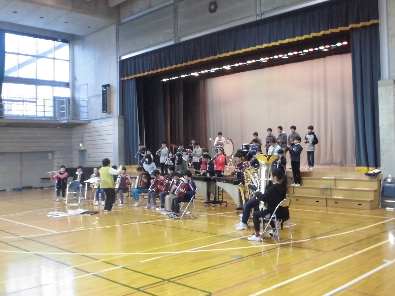 3時間目、体育館で演奏の練習。