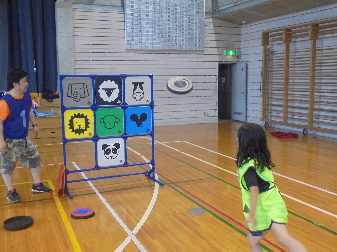ディスクを投げて、的に当てたり、