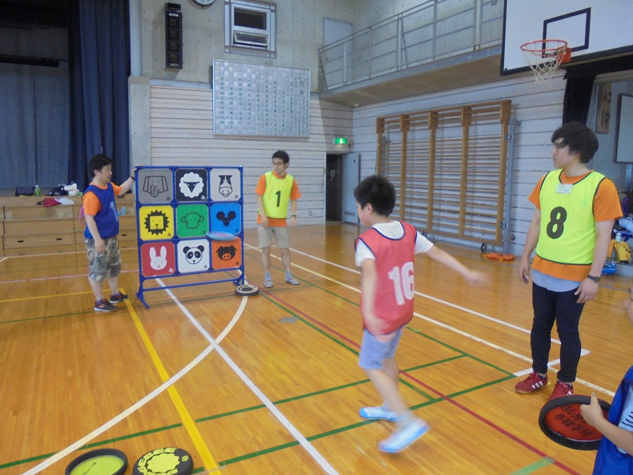 体育館でドッジビーを行いました。