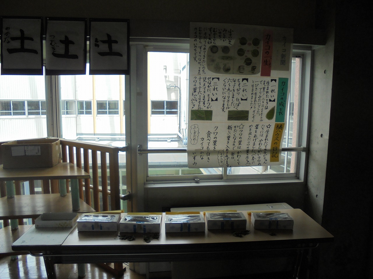 3年生はかいこを飼っています。