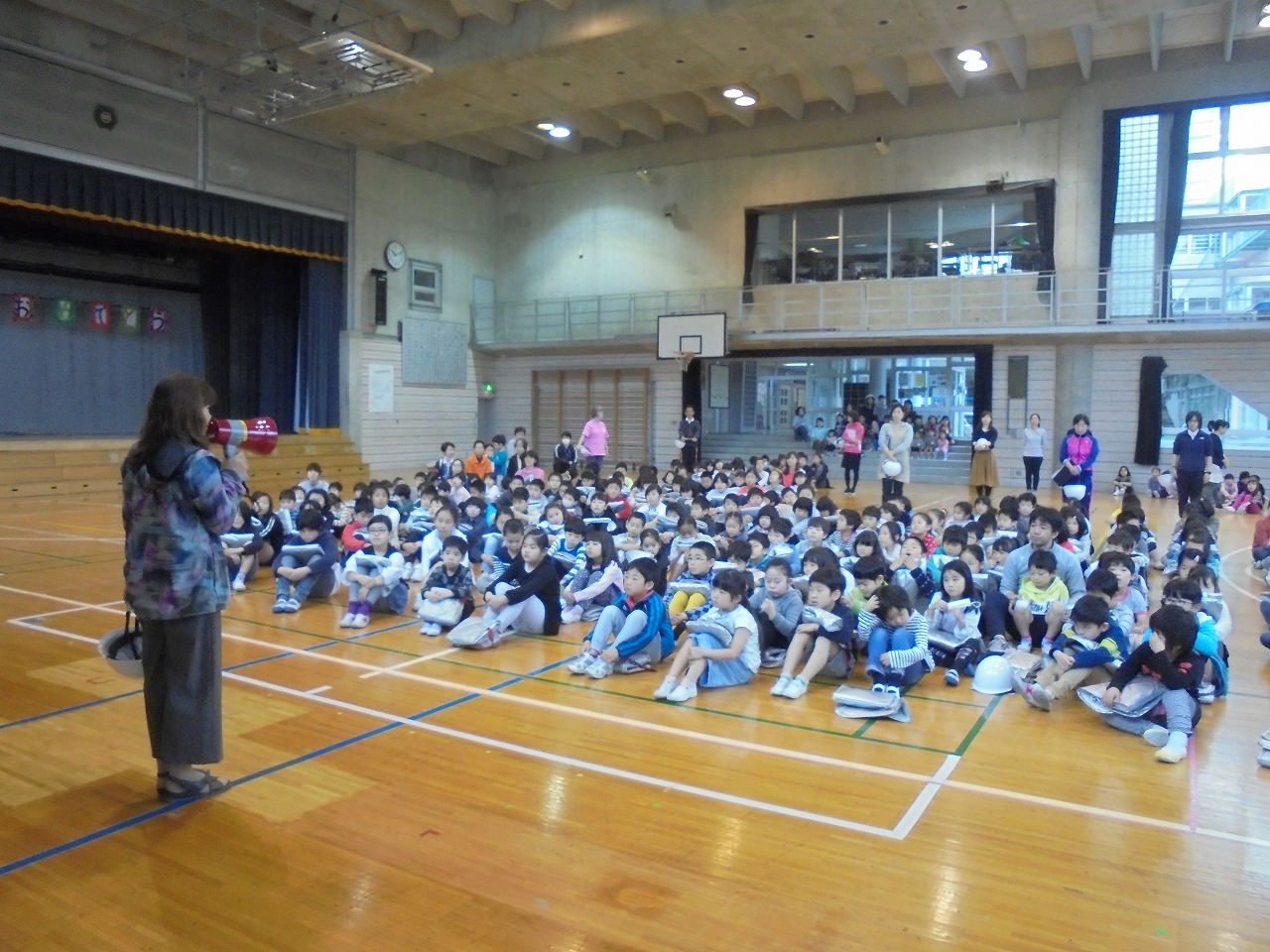 杉四小の避難訓練に