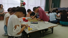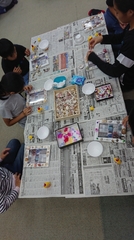 杉八さんと合同の活動班 で一緒にテーブルを囲んで作品を作りました。