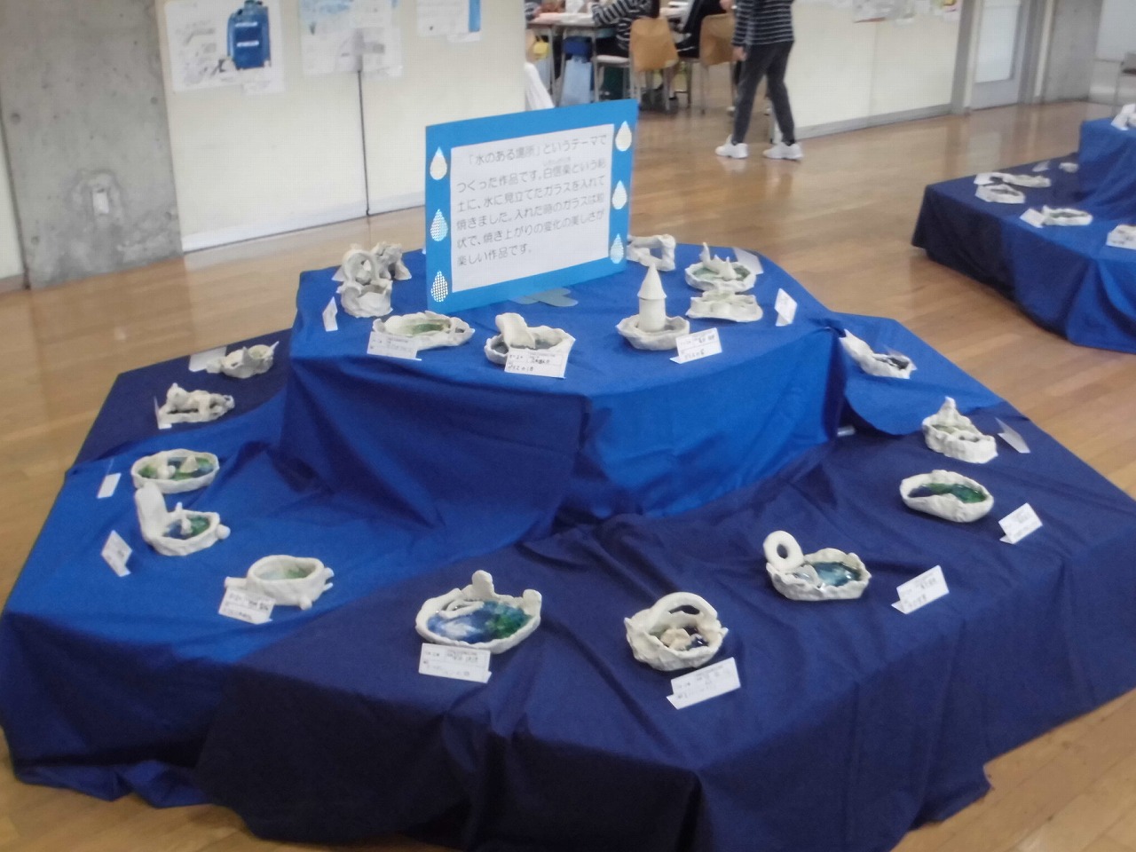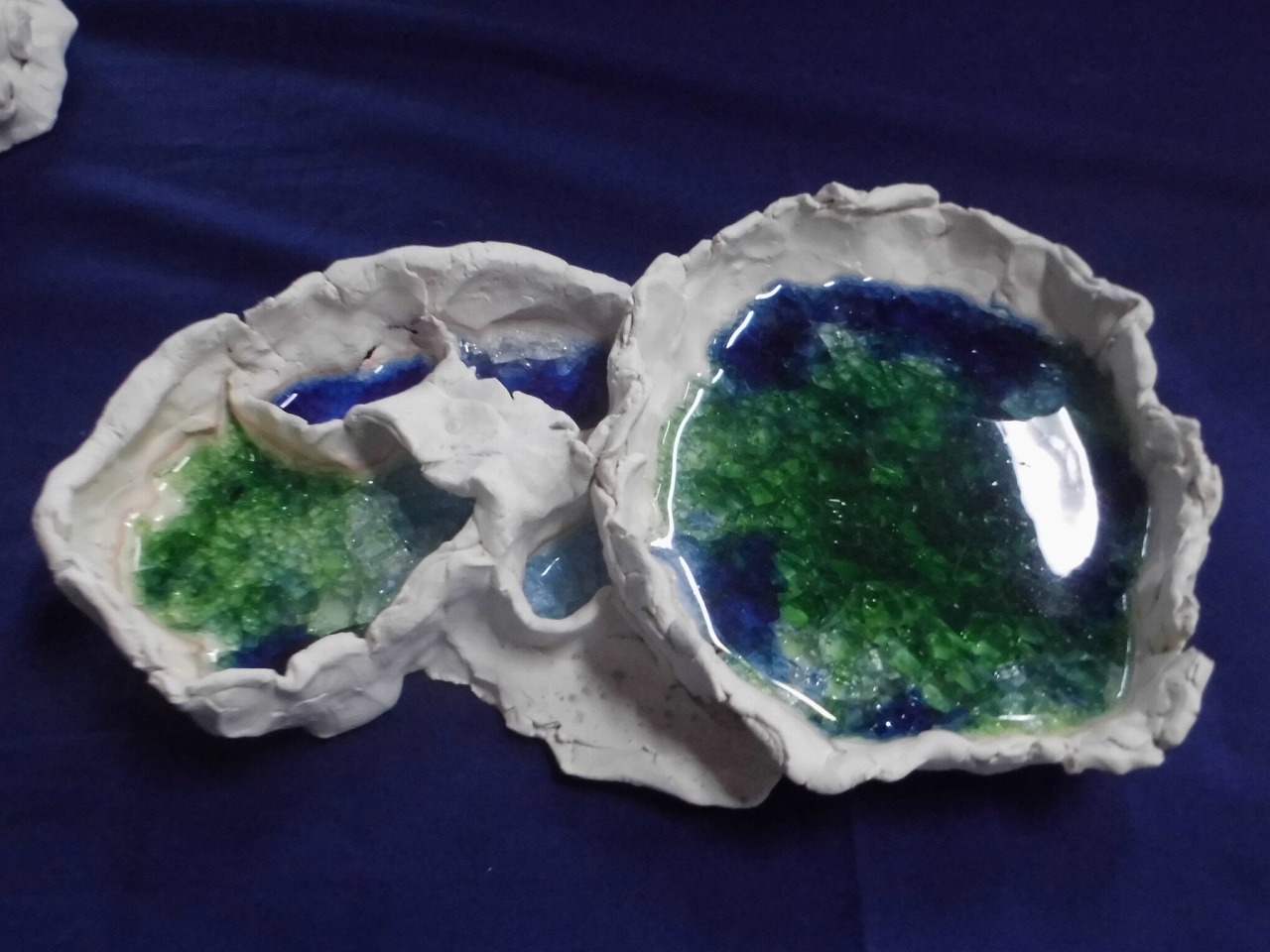 水にみたてたガラスを入れて焼きました。