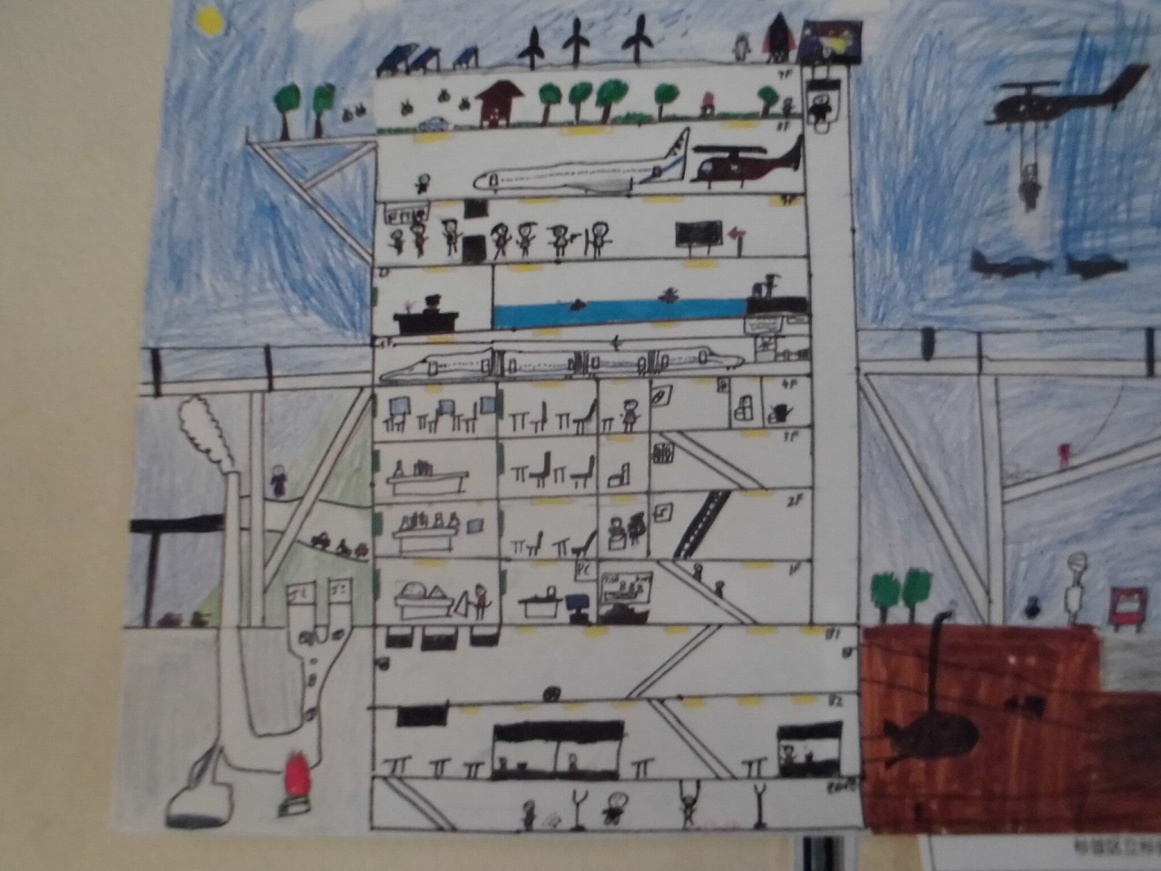 みんなに夢のある学校を考えてもらって、絵にしてもらいました。