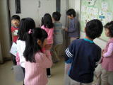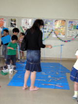 2年生とチームを組んで、学校の中を探検しました。「ここは、先生と一緒じゃないと入っちゃ行けないんだよ。」など、お部屋の説明を2年生がしてくれました。