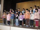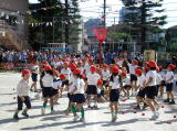 初めて上級生全員の前に並びました。おにいさんおねえさんが多くてびっくり!この日から、杉五小の校庭でも遊べるようになりました。 |