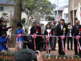 6年生の代表児童が、新しくできた「天沼弁天池公園」の開園式に出席し、テープカットを行いました。 |