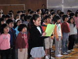 1年生が初めて全校児童の前に出てくる「対面式」で、6年生の代表が挨拶の言葉を述べました。 |