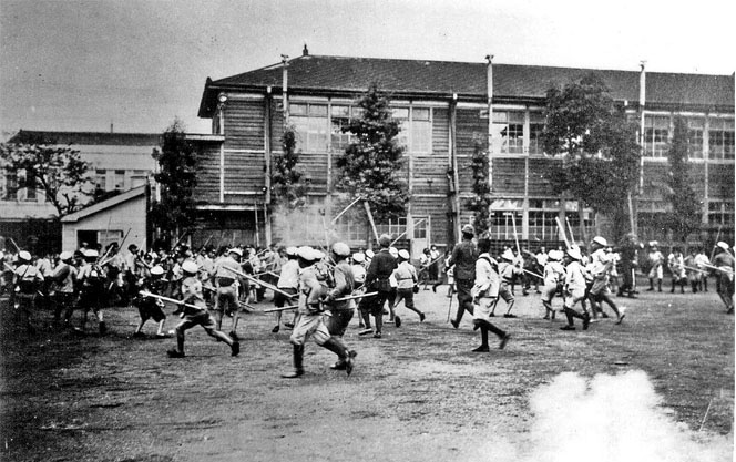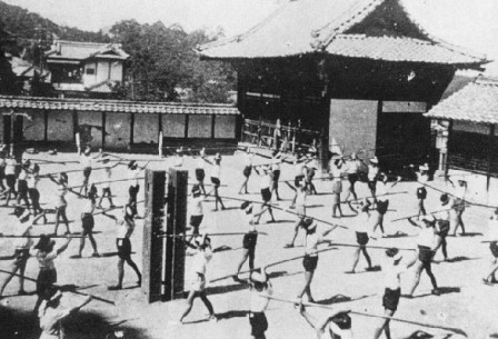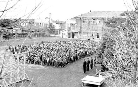昭和40年代に行われていた、朝の5分間マラソン 夏も冬も、男子は上半身裸、女子は半そで体操着で5分間の マラソンをしていた。
