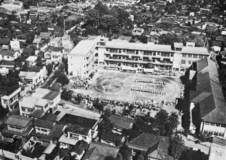 三階建ての校舎の屋上からは富士山がとてもよく見えることを、子どもたちは初めて経験しました。 当時、杉並区内で、鉄筋の校舎を持つ学校はいくつもなく、また、モデル建築第一号としてベランダがつけられましたが、これも区内の学校では珍しいことでした。