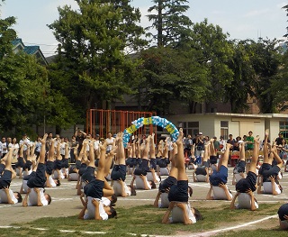 5,6年生の表現。The greatest show in 杉七 90th ver. 肩倒立 フラッグ