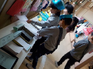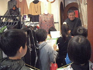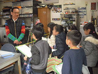 | 「阿佐谷の町解説員になろう」を合言葉に、阿佐谷南三丁目の21軒のお店や会社を8班で分担。各班が2〜3軒を訪問して、インタビューもしました。後日の学習発表会で、各自が作ったフリップボードを使って「阿佐谷の町」を堂々と解説することができました。 | |