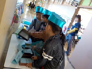 | 廊下に「郵便投函ポスト」を、各教室に「郵便受け」を置いて「杉七ゆうびんきょく」を開局しました。 ハガキを自分たちでデザインして、仕事も分担。帽子とバッグを身に着けて大活躍。他の学年の協力も得て、「ゆうびん」をたくさん届けることができました。 | |