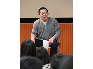 | 卒業生、パールセンターかま重蒲鉾店の太田さんにお話を聞きました。太田さんは「出席簿係」をしていたので、今でもクラス全員の名前を憶えてるよ。と、40人近い当時の同級生の苗字をスラスラと読み上げ、3年生から「すごい!」と驚きの声があがりました。 | |
