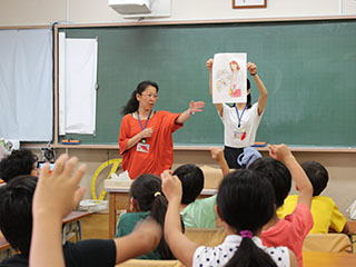 | 昭和58年(1983年)から続く「杉七盆おどり」は、PTA、町会、商店会、おやじの会、ほか多くの人の力で開催されています。杉七盆おどり実行委員の田中さんのお話しを聞き、「杉七盆おどり」に込められた工夫や想いを知り、学習した内容を、後日、3年生に向けて発表しました。 | |