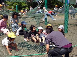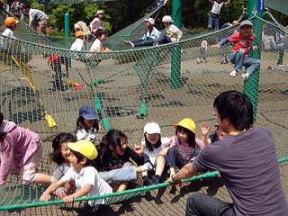 みんなで昭和記念公園に行きました。虹のハンモックや森のとりでで、いっぱい遊びました。緑あふれる広い原っぱでのお弁当もとびきりおいしかったです。やっぱり自然に囲まれた中で遊んだり、お弁当を食べたりすることは、子どもにとって貴重な体験になったと思います。