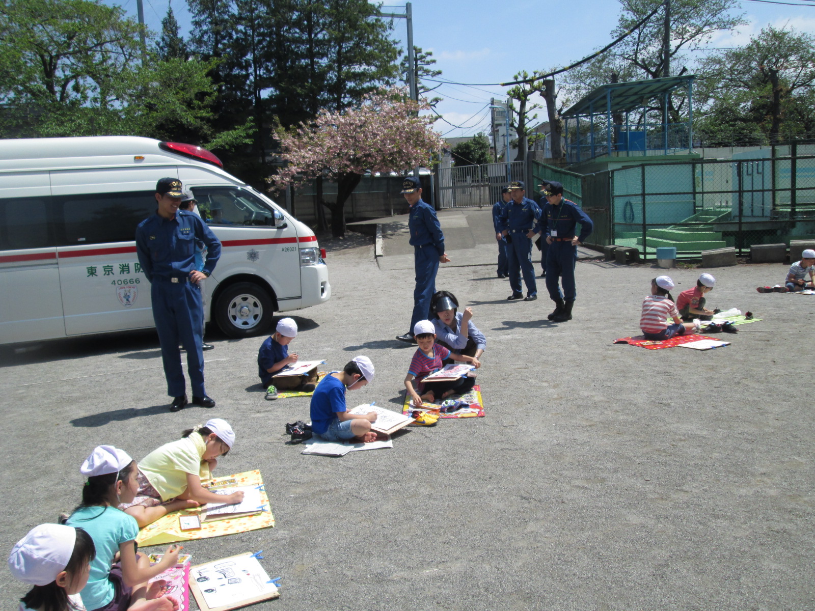 校庭に、消防自動車・救急車が来ました。