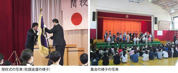 閉校式は、4年生〜6年生参加で挙行、新型コロナウィルスの感染症防止の為に規模を縮小しての開催となりました。ご来賓、PTAの方、旧職員、卒業生、保護者の方々にご来校いただきました。教育委員会に校旗を返還、校歌を斉唱し、式を閉じました。