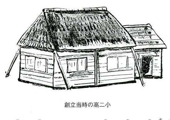 明34. 5. 6 東京府豊多摩郡高井戸第二尋常小学校と称し、木造わらぶき平屋建で開校 児童数89名、教員2名、校長:小島昌一、普通教室2