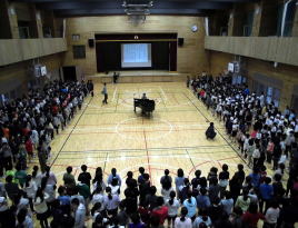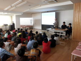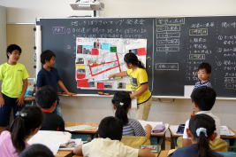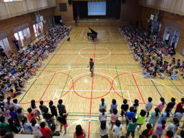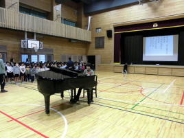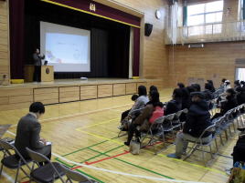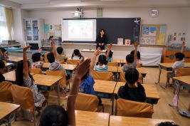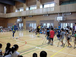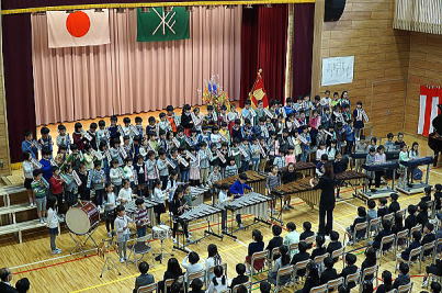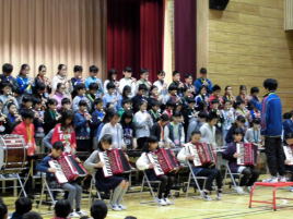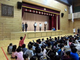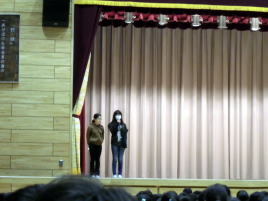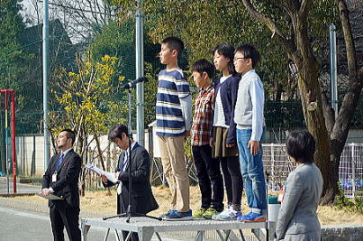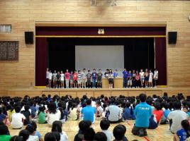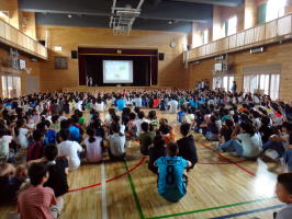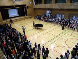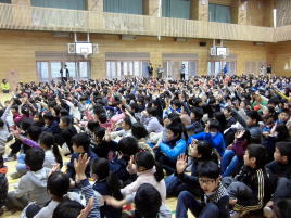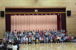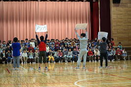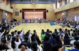 たかにNEWS(平成29年度)平成30年3月6日 6年生を送る会3月6日火曜日の1・2時間目に、「6年生を送る会」が行われました。花のアーチの下を6年生が入場です。首からは1年生からのプレゼントのペンダントを下げています。入口や壁面には2・3年生久我山学級の絵や飾りが飾られています。2年生から順番に6年生への出し物のプレゼントが始まりました。それぞれの学年が、趣向を凝らして練習したことを発表し、6年生への感謝の気持ちを伝えました。それを見つめる6年生は、今までのことを思い出したり、可愛い下学年の様子に笑顔になったり、とてもあたたかい会になりました。最後は6年生からのダンスと歌と合奏の出し物でした。きれいな歌声と「剣の舞」の演奏。さすが6年生!みんなに6年生の立派な姿を見せてくれました。5年生は、「これからは、ぼくたちが高二小を引っ張っていきます。」とバトンを受け継ぐ姿を見せてくれました。ありがとう6年生! 平成30年2月24日 長縄グランプリin高二暖かな春を感じる青空の下、第4回長縄グランプリin高二が行われました。「記録更新するぞー!」「おー!」と円陣を組んで記録に挑む姿、「はい!はい!はい!はい!」と絶え間なく声をかけ跳び続ける姿、友達の挑戦を見守り応援する姿。保護者の皆様からも温かい声援をいただき、大きな励みになりました。目標に向かって全力を出し切った子どもたち。終わったあとの晴れやかな表情は、清々しいものでした。 平成30年2月21日 保健委員会集会2月21日水曜日、保健委員会集会「こんなとき、どうする?」が行われました。 平成30年2月8日 音楽朝会今回の音楽朝会は、以前ペア同士で手遊びをした時のわらべうた、「あんたがたどこさ」で体を暖めてスタートしました。「さ」のところで手拍子をしたりジャンプをしたり、90度ずつ回転してまわったりして体も気持ちもほかほかになってからメインの歌「いつだって!」を歌いました。この歌は4年生の教科書に載っている歌ですが、出会うことのできた友達を大切に思い、いつだってずっと友達だよ、という素敵な歌で、みんな大好きな曲です。もうすぐ新しい学年に進んでいく中で、友達を思う気持ちを込めて歌いました。 平成29年12月9日 道徳授業地区公開講座「生命の尊さ」をテーマにそれぞれの学年が授業を行いました。授業では、子どもたち一人一人が深く考え、その考えを生き生きと伝え合う姿が見られました。また、体育館で行われた講演会においては、「今、育てておきたい自尊感情」をテーマに、小学生のこの時期に自尊感情を高めることの大切さと、自尊感情を高めるために、大人がどのように子どもと接したら良いか、5つのポイントで具体的に分かりやすくお話いただきました。 平成29年11月9日〜11日 展覧会「高二ワンダーワールドへようこそ」 展覧会のご参観ありがとうございました。3日間にわたり、大勢の方々にお越しいただきました。また、会場ではたくさんのうれしい感想をお寄せいただき感謝いたします。 平成29年11月8日 自転車利用実技講習会11月8日に3年生対象に自転車利用講習会がありました。 平成29年10月11日 音楽朝会今年も異学年交流のひとつとしてペア学級(1・6年、2・4年、3・5年)で取り組む音楽朝会がありました。 平成29年10月4日〜6日 5年生富士学園移動教室10月4日(水)から2泊3日で5年生の富士学園移動教室が行われました。今回の移動教室のテーマは、 平成29年9月30日 セーフティ教室9月30日の土曜授業で、セーフティ教室が行われました。1〜3年生、久我山学級を対象にした第1部「連れ去 平成29年9月27日 アンプティサッカー9月27日(木)に、オリンピック・パラリンピック教育の一環として、アンプティサッカーの選手の方々による講演会がありました。 平成29年9月11日〜13日 6年生弓ヶ浜移動教室台風の影響が心配をされましたが、6年生のエネルギーで快晴の中、弓ヶ浜移動教室へ出発しました。社会の授業で学習したばかりの開国の地、下田。各グループで担当を決め、名跡の説明をしたり、友だちの説明を聞きながら歴史を肌で感じることができました。2日目はあいにくの不安定な天候でしたが、ハイキングやサンドスキーを行い、仲間意識をより強くすることができました。充実した3日間を過ごし、大きく成長した6年生の活躍を今後もご期待ください。