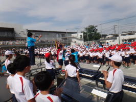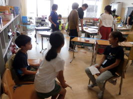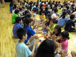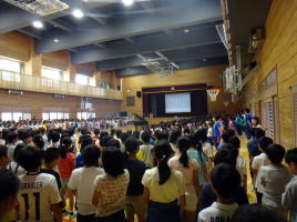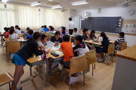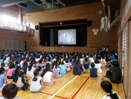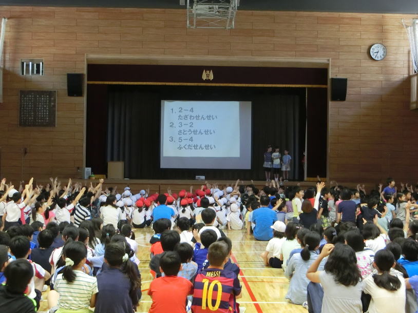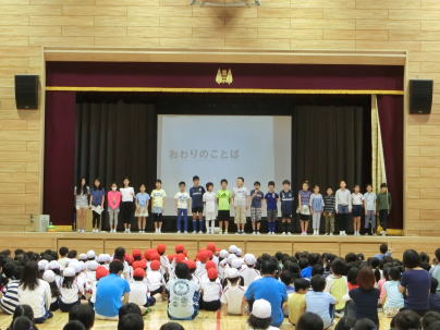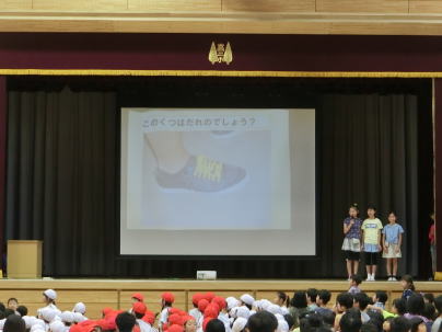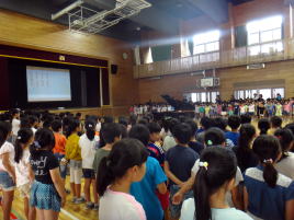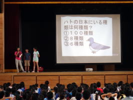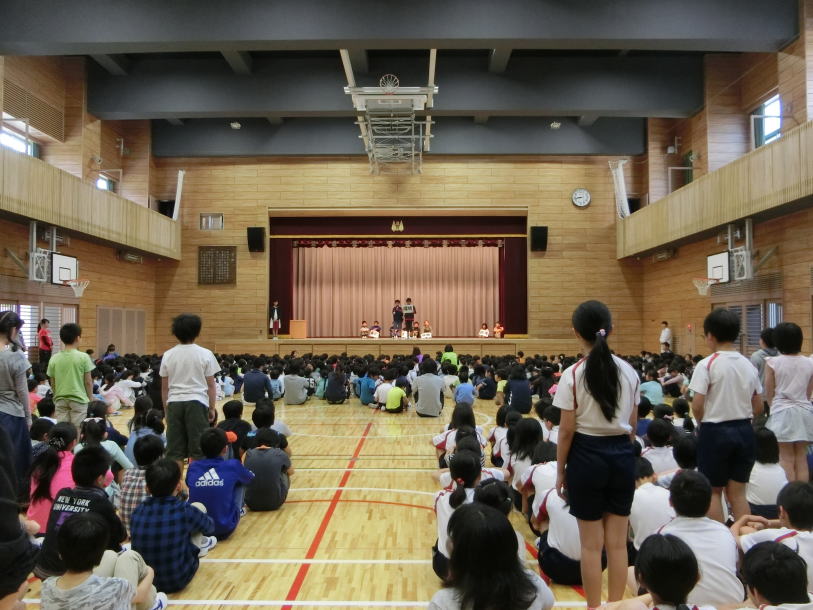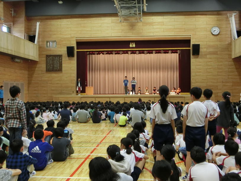 平成29年7月8日 たかにまつり 7月の土曜授業はたかにまつりを行いました。2〜6年生の全クラスと久我山学級がクラス毎にお店を出しました。それぞれのお店には、1年生と6年生、2年生と4年生、3年生と5年生がペアを組み、お客さんとしてお店をまわりました。ペアで回ることで、異学年の児童同士が交流を深めるのも、たかにまつりの大事な取組です。たくさんの保護者・地域の皆様にもお店を楽しんでいただいたことが、この日に向けて準備をすすめてきた子どもたちの励みとなりました。ご来校ありがとうございました。 平成29年6月29日 飼育委員会集会 飼育委員会では、学校で飼育をしているハトとカメのせわを行っています。6月29日木曜日の集会で、飼育委員の仕事や、ハトやカメのことを全校児童に知ってもらうために発表をしました。ハト小屋の掃除の様子をビデオに撮って映像として流し、仕事の説明をするグループ、ハトやカメについてのクイズを考えて、出題したり、解説したりするグループ、実際にハトやカメを体育館に連れてきて、ゲストとして紹介するグループと、興味をもってもらえるよう、工夫して発表することができました。 平成29年6月22日 音楽朝会 今回の音楽朝会では「ほしまつり」と「スタートライン」を歌いました。