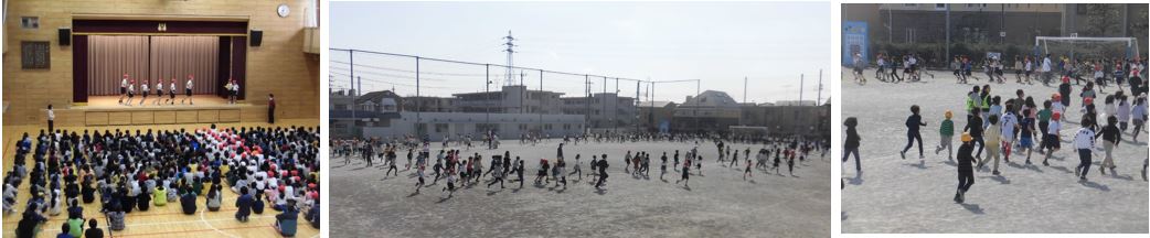 2月6日(木)に体育朝会がありました。6日からマラソン旬間が始まります。 体育朝会では、運動委員会の児童が、良くない走り方、良い走り方、校庭を走るときのルールについて、低学年でもわかりやすいように、実際に走ってみせながら説明をしました。 2月28日(金)までの中休みに、低学年・高学年に分かれて5分間校庭を走ります。運動委員会の児童が、準備運動や一緒に走りながらマナーの呼びかけなどを行っています。 マラソン旬間の取組をつうじて、寒さに負けない体をつくってもらいたいと思います。 |