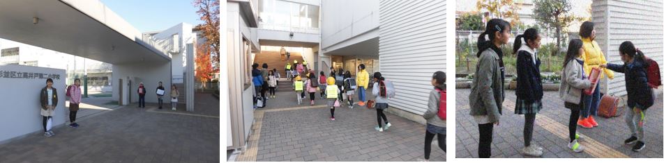 3時間目は地震発生を想定し、保護者への引き渡し訓練を行いました。大きな地震が起きた際に、どのように行動するべきなのか、子どもたち、地域・保護者の方々、教職員の全てが考えるよい機会になりました。 ゲストティーチャーの皆様、そしてご参加いただいた多くの保護者・地域の皆様にお礼申し上げます。 |