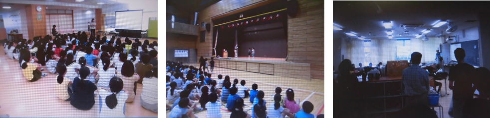 ご自身の国の様子や文化、現地の小学校生活、なぜ日本に来たか、日本に来て驚いたこと、日本との違いを、写真や音楽、パフォーマンスをまじえながら、楽しく分かりやすく話してくださいました。子どもたちも、興味深く話を聞いており、様々な国の人や文化への理解を深めたようです。 講師に来てくださった留学生の方々、ご協力くださった皆様、ありがとうございました。 |