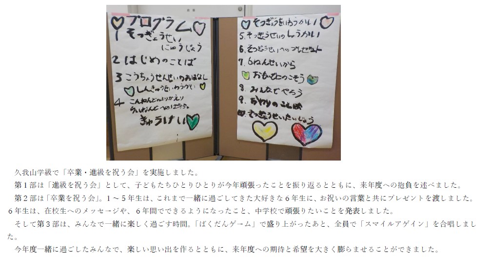 令和7年3月6日(木)久我山学級 卒業・進級を祝う会