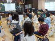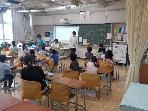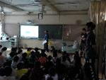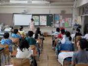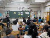 <3年生 ヤゴ救出大作戦に向けて> プール清掃が始まる前に、3年生がプールにいるヤゴを救出する活動があります。事前学習としてゲストティーチャーの方においでいただき、ヤゴの生態について解説をいただきました。救出後は、教室で羽化を迎えさせます。 |