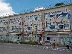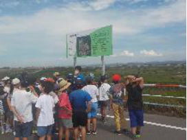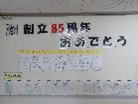<8月2日(金) 横断幕ができました> 8月に入りました。暑い日が続いています。創立85周年を記念した横断幕ができあがりました。早速、正門の左に張り出しました。マスコットキャラクターの「かめたろう」も活躍しています。 |