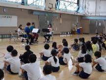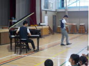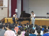 <6/11(火) エバリーさんによる音楽鑑賞教室を行いました> 音楽ユニットエバリーのお二方をお迎えし、1〜3年生を対象にした音楽教室を行いました。 この日は、ピアノとバイオリンのユニットでした。クラシックの名曲やディズニーメドレーなど、子供たちのよく知っている曲を披露していただきました。楽しい時間となりました。 |
