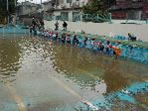 <5/16(木) 3年生ヤゴ救出大作戦を行いました> プールの清掃前に行っている「ヤゴ救出大作戦」を行いました。プールの水を足首くらいまで抜き、網でプールの底から救い上げると、落ち葉の中に小さなヤゴを見つけることができます。同じプールの中でも、アカトンボやオニヤンマ、シオカラトンボ等、多様性にあふれていました。ヤゴは。学校で観察したり、自宅に持ち帰ったりします。講師の先生方はもちろん、保護者の皆様にもご協力いただきました。 ありがとうございました。 |