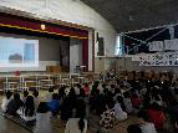 <2月20日(木) 全校での音楽朝会> 高四小では、月1回全校での音楽朝会を行っています。今回は、3曲歌いましたが、その中の1曲が「ともだちさんか」でした。全校で歌うともだちさんかは、元気を与えてくれる曲のように聞こえました。 |
