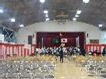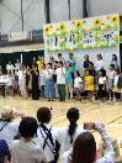 下学年と上学年に分かれて、振りと歌を違えると全校で一体感ある合唱になりました。全校の輪の中心には合唱団の児童が入り、リードしました。