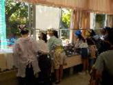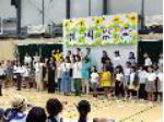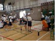 集会委員会の児童による、夏バージョンの猛獣がりゲームを行いました。多くの学年の仲間とグループが組めるように工夫して行いました。「うきわ」「かきごおり」など、夏のお題がたくさん出されました。 |