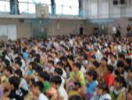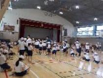 月1回程度、音楽朝会を実施しています。今回は、サモア島の歌に振りを付けて歌いました。