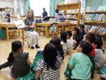 今日は、図書ボランティアの方による絵本の読み聞かせが昼休みにありました。