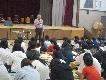 <9月30日(月) 高井戸警察の方による講話がありました> 全校朝会終了後、高井戸警察生活安全課の方による、特殊詐欺被害防止の講話がありました。昨今は、その被害だけでなく、加害の側に若者が加担してしまうということから、その両方を防ぐための講話でした。スマートフォンの所持があたりまえとなった今、その危険性を学ぶことができました。 |