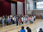 <4月7日(火) 学年集会にて目標をたてます> 新学期を迎え、新しい友達や先生と共通の目標をもって学校生活をスタートできるよう学年集会を開くようにしました。遊びの活動も通して、輪を広げ深めていきます。 |